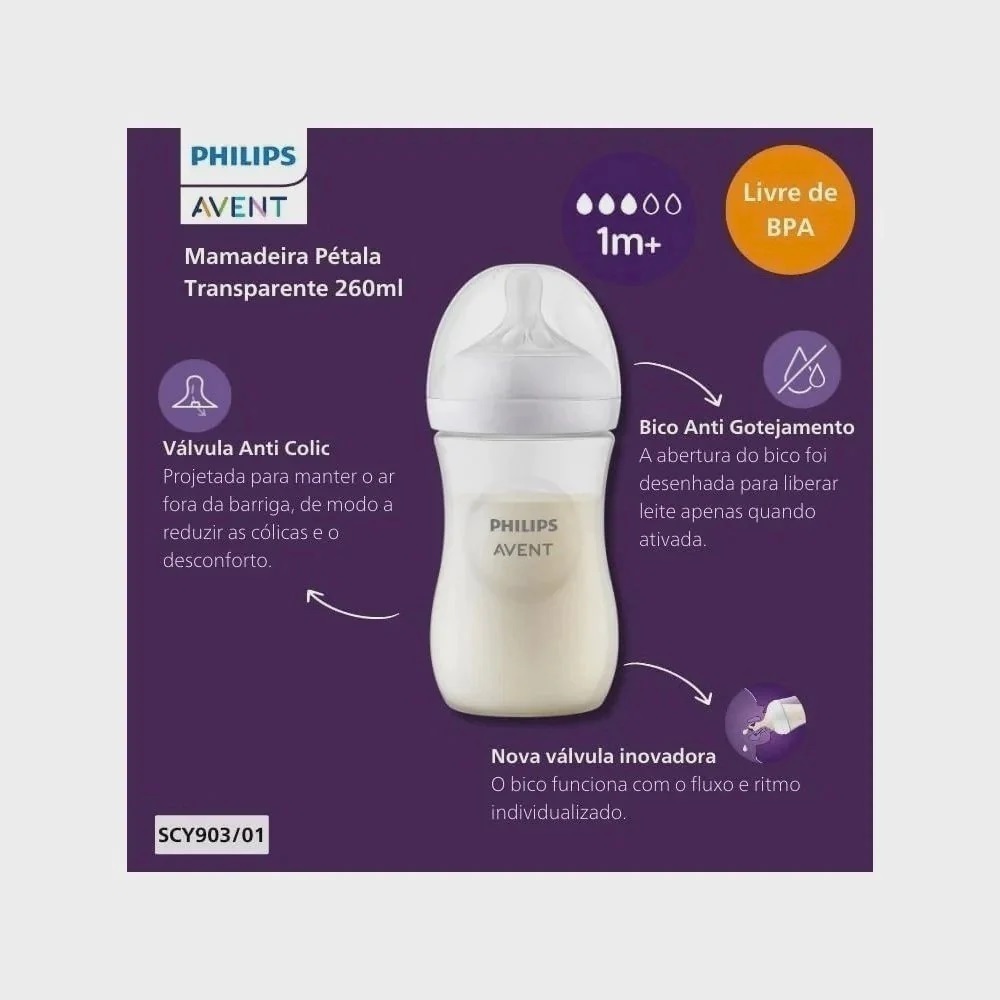• 01 x MAMADEIRA PÉTALA AVENT 3.0 260 ML- Novo Bico 1m+ (nr.3)